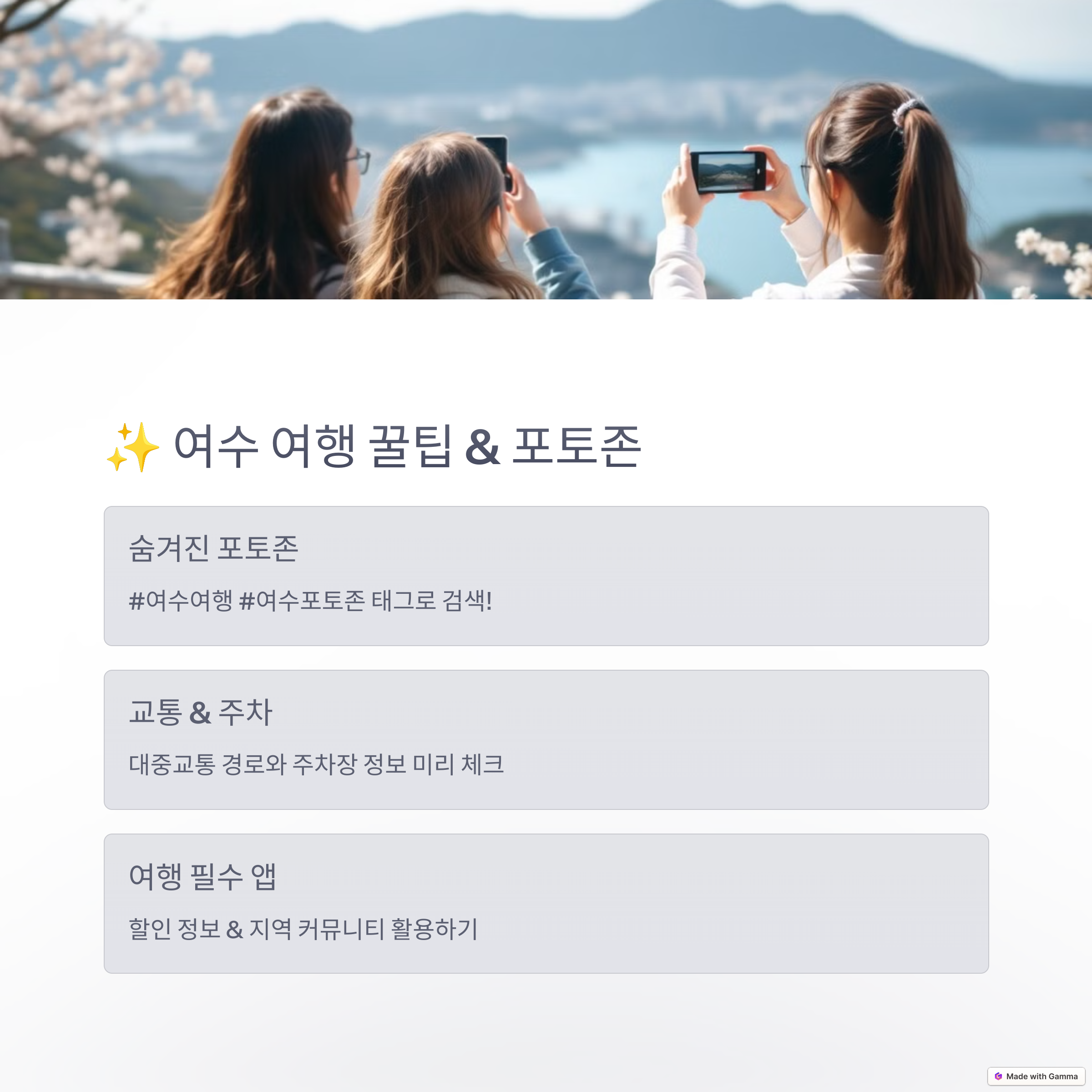 여수 여행을 다녀오신 분들의 추천 장소나 맛집, 또는 이번 글에서 도움이 되었던 정보가 있으셨다면 댓글로 함께 나눠주세요. 여러분의 이야기가 또 다른 여행자에게 소중한 팁이 될 수 있습니다!