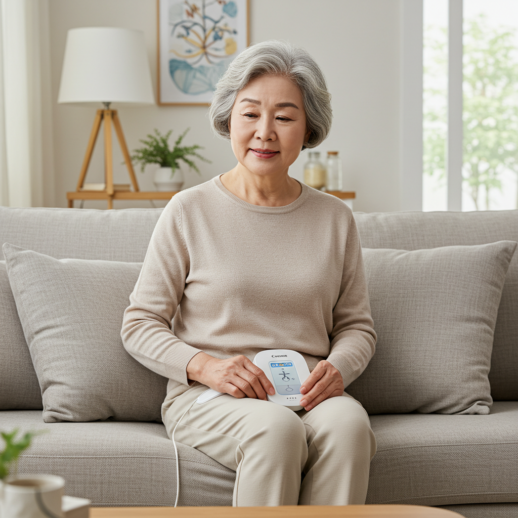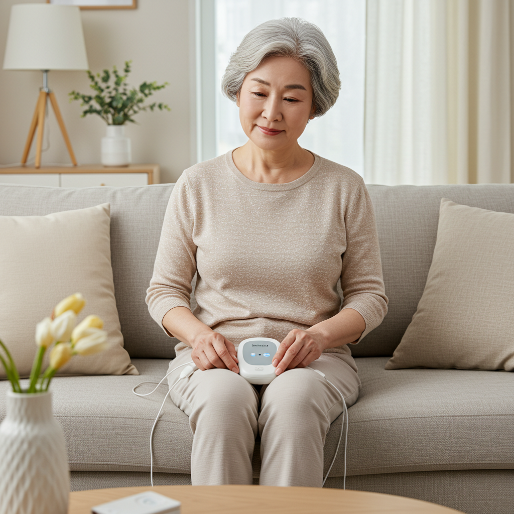 전기자극 치료기는 골반저근육을 직접 자극하여 수축력을 회복시키는 원리로, 특히 복압성 요실금에 효과가 좋습니다. 단, 심박조율기 착용자나 금속삽입물 보유자는 반드시 전문의 상담 후 사용해야 합니다.